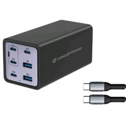 CONCEPTRONIC OZUL06BE CARICBATTERIE DA RETE PD USB GaN 200 W 6 PORTE (4X USB-C, 2X USB-A, QC 3.0, PD 3.1, PPS) CON CAVO DI RICARICA USB-C NERO