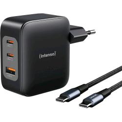 INTENSO POWER ADAPTER CARICABATTERIE DA RETE GaN 100W 1 x USB-A 2 x USB-C + CAVO USB-C INTRECCIATO NERO