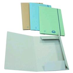 ECO NEW. CARTELLE IN CARTONE RICICLATO CON ELASTICO TONDO E TRE LEMBI. FORMATO: 35X25. DISPONIBILE NEI COLORI: CAMOSCIO, VERDE, AZZURRO E GRIGIO.