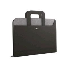 PORTABLOCCO IN TESSUTO TECNICO CON ANELLI, MANICI A SCOMPARSA. Portablocco formato A4 con chiusura a zip, scomparti per biglietti, tasca interna portadocumenti, 4 anelli, portapenna e completo di blocco,dimensioni 36x28cm.