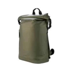 Zaino con chiusura arrotolabile per laptop 15.6" e MacBook 16", in tessuto riciclato, resinato resistente all'acqua. Dotato di un ampio vano unico, lo zaino Rollo, ha una tasca interna per il laptop, una tasca esterna per accessori e spallacci imbottiti e regolabili che lo rendono comodo e utile sia per il lavoro sia per il tempo libero.