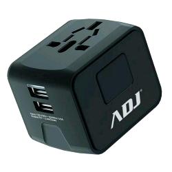 ADJ ADATTATORE UNIVERSALE DA VIAGGIO PER US/EU/AUS/UK 2.000 W + 2 PORTE USB-A 5V 2.4 A NERO