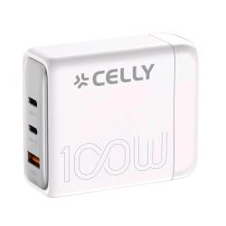 CELLY POWERSTATION CARICABATTERIE COMPATTO TECNOLOGIA GaN 2 x USB-C 1 x USB-A MAX 100 W BIANCO