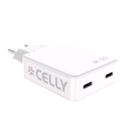 CELLY SLIM CARICABATTERIE DA RETE GaN 65 W 2 x USB-C SOLO 1cm DI SPESSORE BIANCO