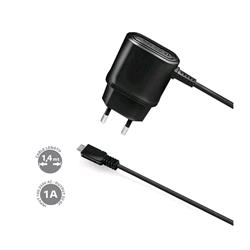 Caricatore da rete nero con connettore MicroUSB dal design elegante. Leggero e pratico, è ora più potente e più veloce grazie a l' output di 1A per ricaricare ancora più velocemente smartphone di nuova generazione con ingresso micro usb.