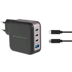 CONCEPTRONIC ALTHEA18B CARICABATTERIE DA RETE GaN PD 100 W 4 PORTE 3 x USB-C - 1x USB-A, QC 3.0 PPS CON CAVO USB-C MASCHIO-MASCHIO 1.5 MT INCLUSO NERO