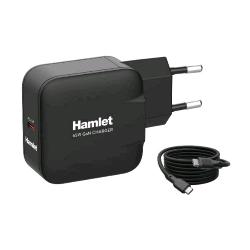 HAMLET CARICABATTERIE DA RETE GaN USB-C PD 65 W + CAVO USB-C MASCHIO/MASCHIO 2 MT NERO