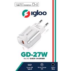 IGLOO GD-27W CARICABATTERIE DA RETE FAST CHARGE QUICK CHARGE 3.0 USB-A 3A WHITE