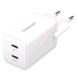 INTENSO POWER ADAPTER CARICABATTERIE DA RETE GaN 2 x USB-C PD QUICK CHARGE 4.0 40 W 2 x 20 W BIANCO