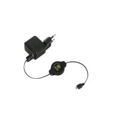 RETRAK ALIMENTATORE DA RETE 1 X USB TIPO A CON CAVO USB TIPO A / MICRO USB RETRATTILE 1 M NERO