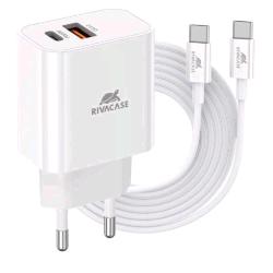 RIVACASE CARICABATTERIE DA RETE PD 20 W 2 USCITE 1 x USB-A 1 x USB-C + CAVO USB-C MASCHIO/MASCHIO 1 MT BIANCO