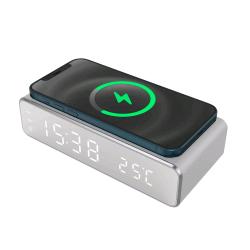 TECHMADE SVEGLIA DIGITALE CON RICARICA WIRELESS PER SMARTPHONE 15 WATT SILVER