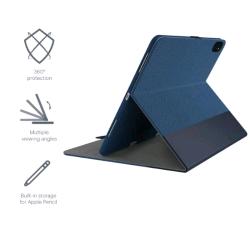 Custodia BLU per iPad 10.9 e 11 (2020/2018) con portapenne Apple - grigio / nero. La custodia TekView Slimline per iPad Pro 10.9 e 11 "(2020/2018) ha tutto il necessario per proteggere il tuo iPad e migliorarne le funzionalità, incluso lo spazio di archiviazione integrato per la tua Apple Pencil. Combinando un esterno in tessuto resistente, con un interno in morbida microfibra, il tuo iPad è dotato di un'eccellente protezione a tutto tondo. (Ricarica Apple Pencil non supportata). Il rivestimento protettivo avvolgente protegge il tuo iPad Pro dall'usura quotidiana, mentre l'interno in morbida microfibra protegge lo schermo dai graffi, assicurando che il tuo iPad rimanga in ottime condizioni in un design sottile e leggero. Lo spazio di archiviazione Apple Pencil integrato significa che tutti gli elementi essenziali del tuo iPad possono essere riposti in modo sicuro in un unico posto, pronti per prendere nota all'apertura. Trasforma facilmente la tua custodia in un supporto con tre visualizzazioni personalizzabili, che ti consentono di scegliere l'angolazione perfetta mentre lavori, presenti o guardi Netflix.