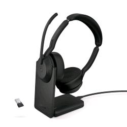 JABRA EVOLVE2 55 DUO MS LINK380 CUFFIE STEREO CON MICOFONO WIRELESS BLUETOOTH A PADIGLIONE CANCELAZIONE ATTIVA DEL RUMORE CON BASE DI RICARICA USB-A BLACK