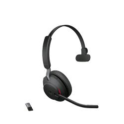 JABRA EVOLVE2 65 CUFFIA MONOAURALE CON MICROFONO WIRELESS MS NOISE CANCELLING CON ADATTATORE BLUETOOTH USB-A NERO