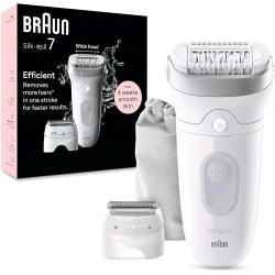 BRAUN SILKEPIL 7 EPILATORE ELETTRICO DONNA CON TESTINA AMPIA PER UNA EPILAZIONE SEMPLICE WET & DRY BIANCO ARGENTO