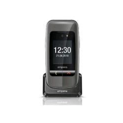 Funzionalità senior o Caratteristiche di facile utilizzo. Pulsanti luminosi extra-grandi con un definito punto di pressione. Accetta chiamate quando è chiuso con una funzione extra pulsanti per rispondere e riagganciare. Ampio schermo esterno ed interno con testo che è facile da leggere. Dimensione del testo regolabile. Funzione chiamata emergenza emporia. Adatto a persone con problemi di udito. 3 tasti di selezione rapida 2 sportelli batteria, con e senza bottone di emergenza. Funzione di chiamata di emergenza emporia (opzionale). Dual-band - GSM 900/1800. Tipo di scheda SIM: mini SIM. Dimensioni: 104,3 x 51,5 x 18,6 . Peso: 80 g. Batteria: agli ioni di litio 3,7 V / 900 mAh Antenna interna: SAR. Schermo: TFT da 2,4 ", 240 x 320 pixel. Display esterno: TFT da 1,77 ", 128 x 160 pixel. Fotocamera da 2 megapixel . Bluetooth 3.0 HFP, HSP, PBAP e OPP. Slot per schede MicroSD (per schede fino a 8 GB). Funzione chiamata di emergenza (opzionale) : Vengono chiamati fino a cinque numeri di emergenza automaticamente uno dopo l'altro quando questo pulsante viene premuto. È possibile inviare messaggi di testo di emergenza a numeri di emergenza