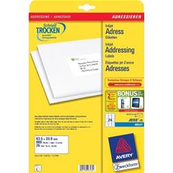 Avery J8159-25. Colore del prodotto: Bianco, Tecnologia di stampa: A inchiostro, Dimensione etichetta: 63.5 x 33.9mm