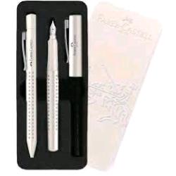 FABER CASTELL GRIP EDITION SET DA SCRITTURA PENNA A SFERA E PENNA STILOGRAFICA BIANCO CONFEZIONE REGALO