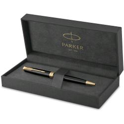 Cappuccio e corpo nero opaco laccato impreziositi da dettagli e clip con finiture in oro. Penna a sfera con meccanismo a scatto retrattile e punta media. Assemblata e controllata a mano per garantire una qualità perfetta. Disponibile in una vasta gamma di modelli e finiture. Fornita in una confezione regalo PARKER di altissima qualità.