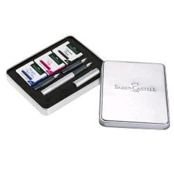 FABER CASTELL SET GRIP 2011 SILVER CALLIGRAPHY PENNA STILOGRAFICA CON 3 PENNINI E 3 ASTUCCI DI CARTUCCE COLORI ASSORTITI
