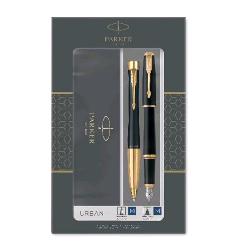 PARKER URBAN DUO PENNA A SFERA E PENNA STILOGRAFICA CORPO NERO OPACO FINITURE DORATE INCHIOSTRO BLU CONFEZIONE REGALO